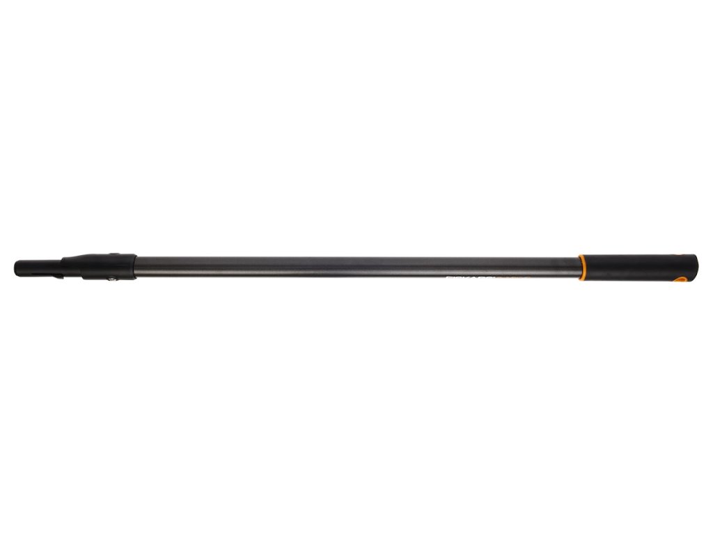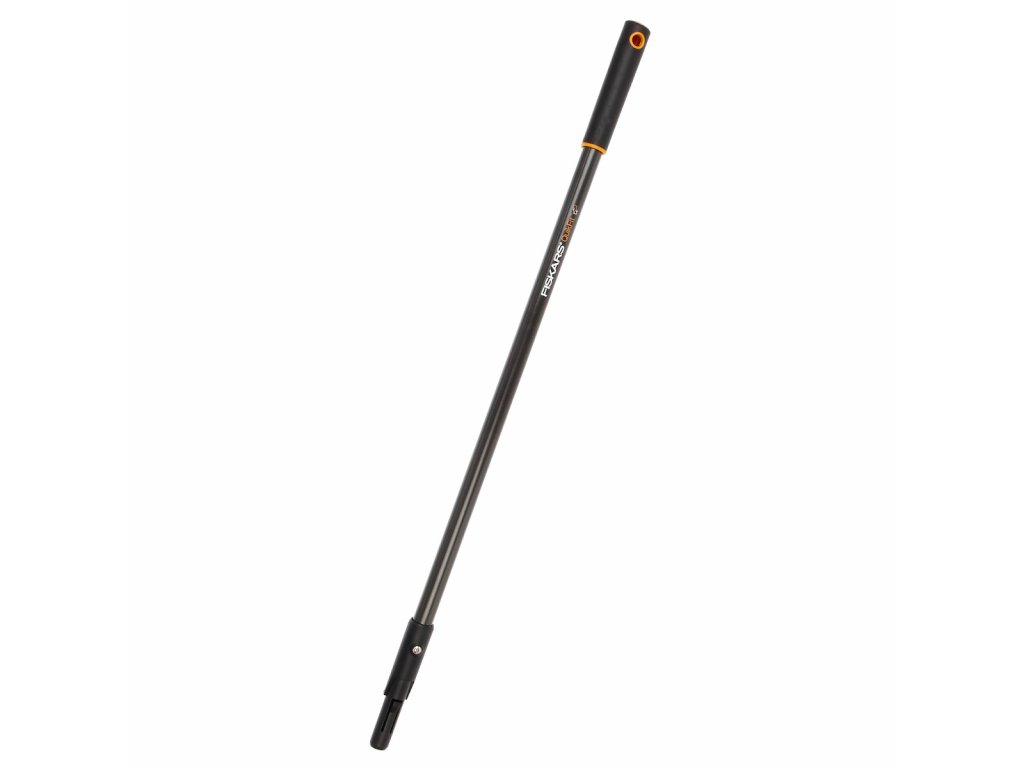 Hartowany aluminiowy uchwyt ma miękkie plastikowe wykończenie. Kształt uchwytu w kształcie kropli oraz opatentowany mechanizm umożliwiają szybkie połączenie osprzętu. Aby ułatwić przechowywanie, uchwyt ma otwór wiszący. Szerokość: 30 mm, długość: 845 mm, waga: 290 g. Oryginalny Fiskars numer: 136022. Oznaczenie: (M)