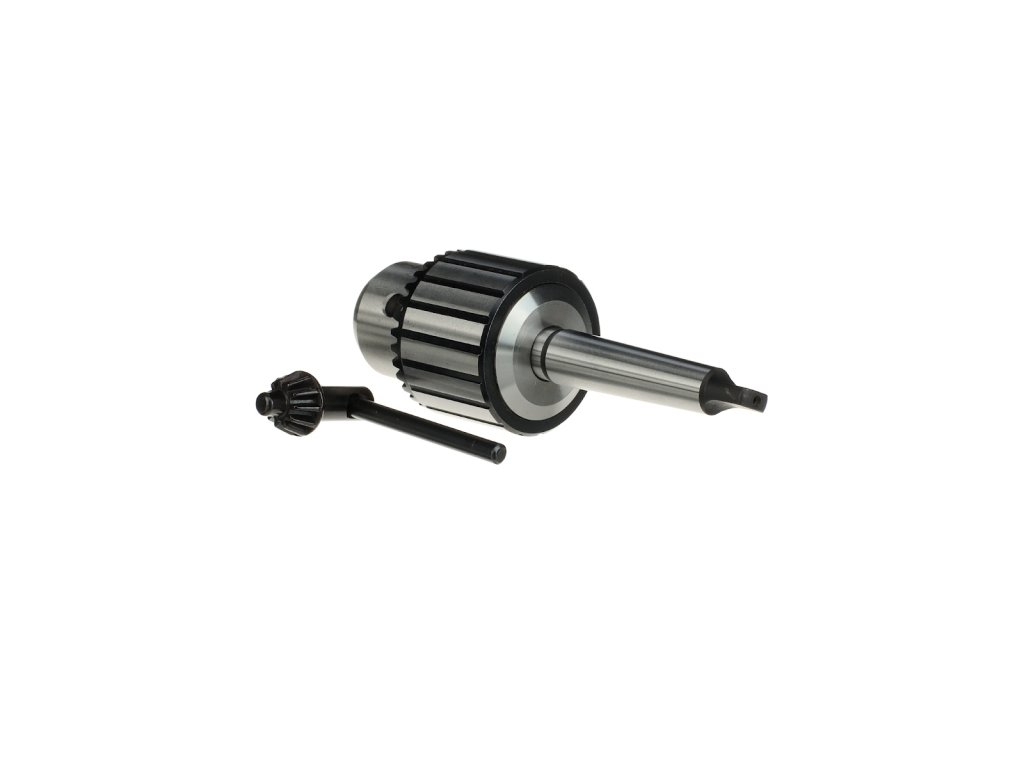 Uchwyt zębaty do wiertarek, tokarek i frezarek. Średnica mocowania uchwytu 3 – 16 mm, kieł mocujący Mk2. Dostarcza się wraz z korbką.