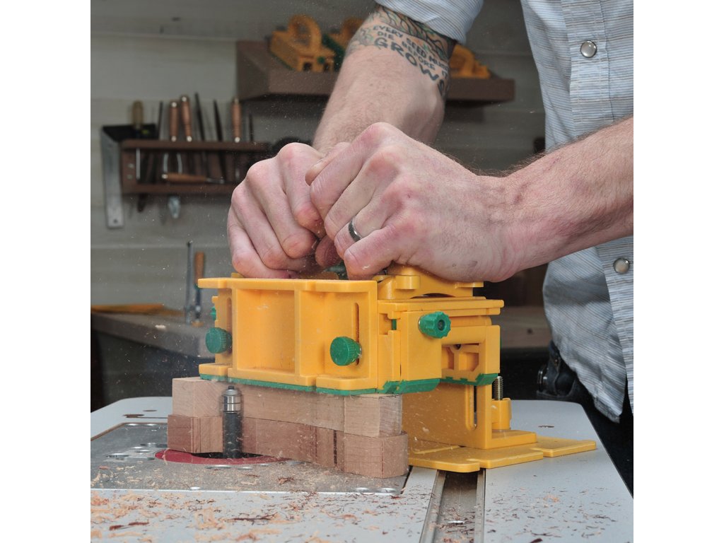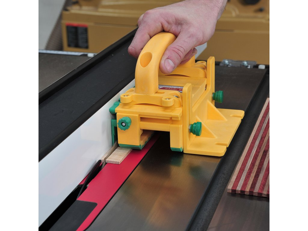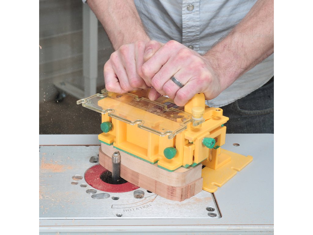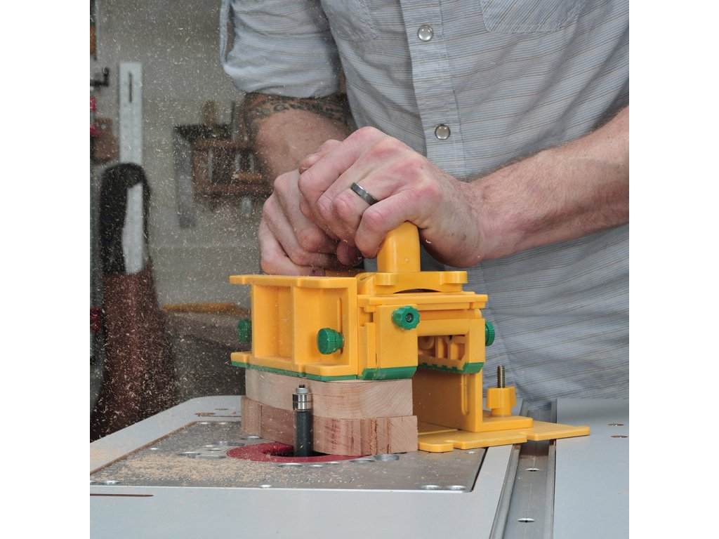 GRR-RIPPER zapewnia niesamowitą kontrolę nad obrabianym przedmiotem na stole frezarskim. Niezależnie od tego, czy używasz płytki prowadzącej, czy frezujesz z wolnej ręki, jego mocny uchwyt utrzymuje obrabiany przedmiot i chroni dłonie przed obracającym się wiertłem.