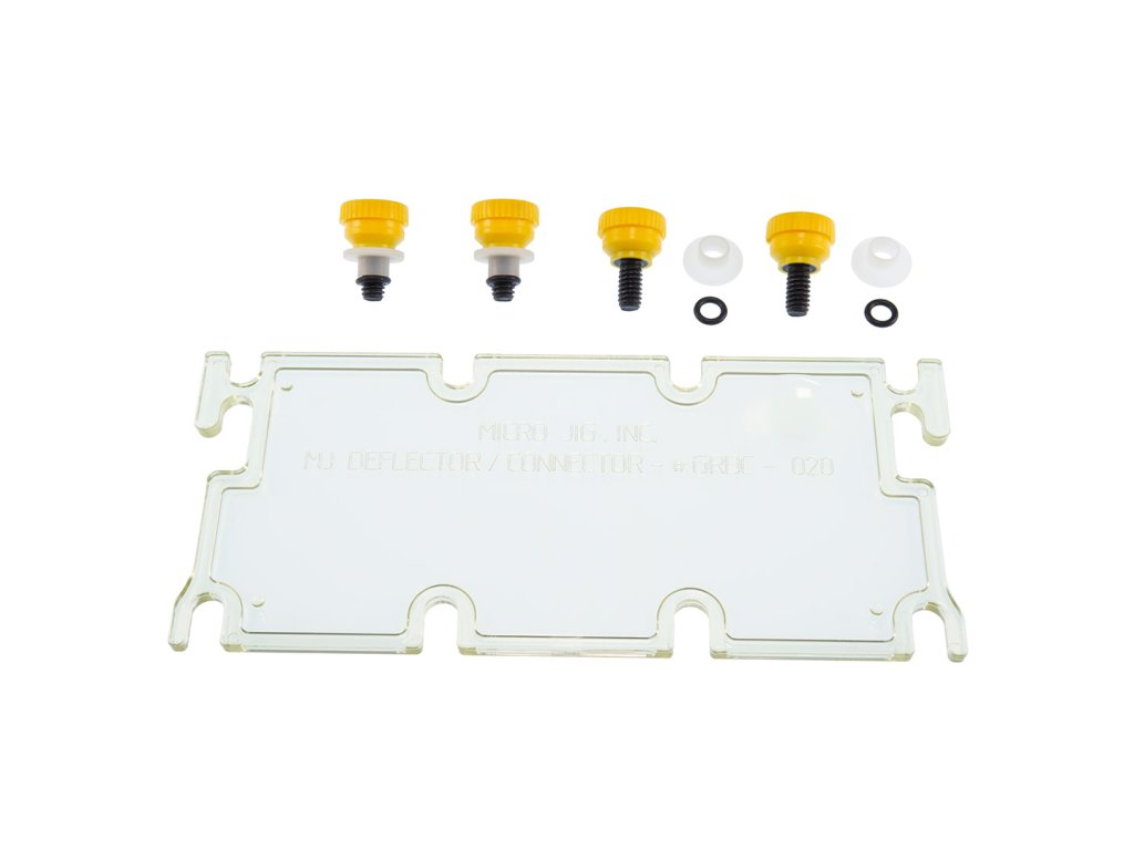 Deflektor/sprzęgło działa jak bariera między dłonią a obracającym się ostrzem. Jednocześnie odbija wióry i brud. Można je również mocować do uchwytów GRR-RIPPER wyposażonych w mostki mocujące uchwyt. Dwie GRR-RIPPERY oznaczają podwójną kontrolę podczas pracy z większymi detalami.