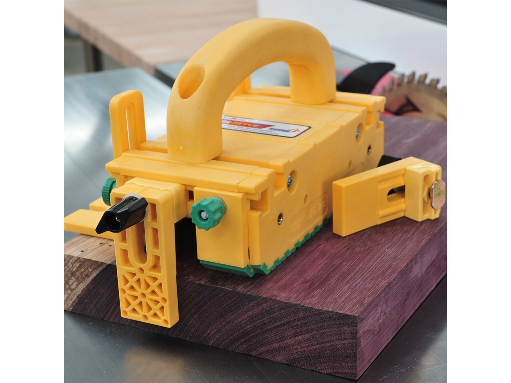 GRR-RIPPER został zaprojektowany przede wszystkim do pilarki stołowej. Działa jak ruchoma osłona tarczy pilarskiej i chroni dłonie przed tarczą pilarską podczas całego cięcia. Produkt umożliwia ruch w 3 kierunkach, dzięki czemu można uzyskać czystsze i dokładniejsze cięcie.