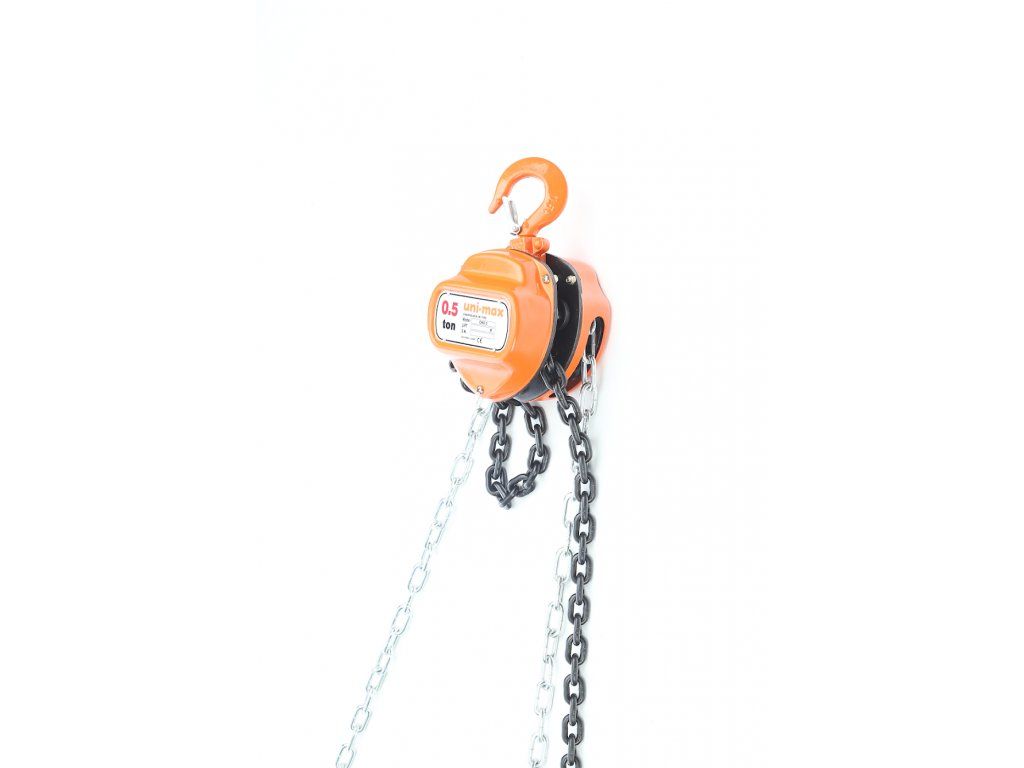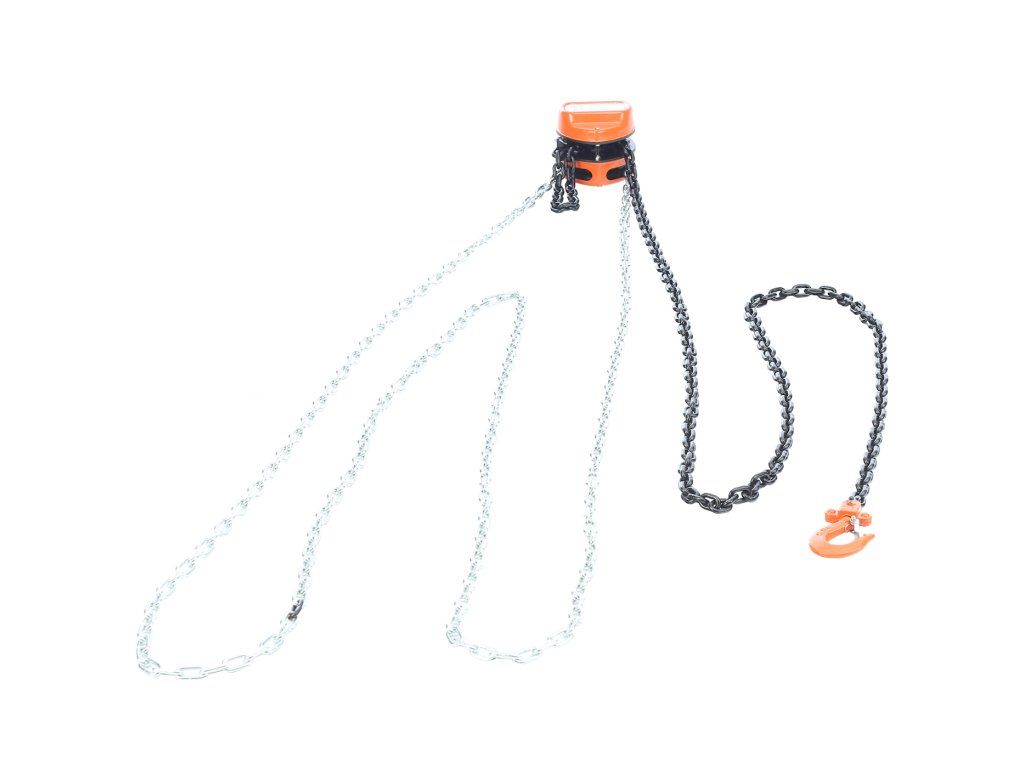 Wielokrążek łańcuchowy z łańcuchem ogniwowym, prosta konstrukcja, masywne wykonanie, minimalna potrzeba utrzymania. Wykorzystanie zębatki znacznie obniża wysiłek pracy, poprawia wydajność a karabinek zabezpieczający haki zwiększa bezpieczeństwo. Oznaki deformacji wskazują na przeciążenie kutych haków. Min. odległość haków 280 mm; szerokość otworu w haku 27 mm; szerokość całkowita 125 mm; głębokość 123 mm.