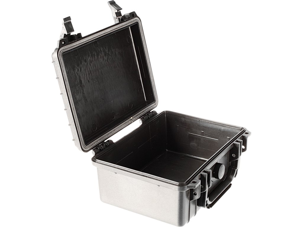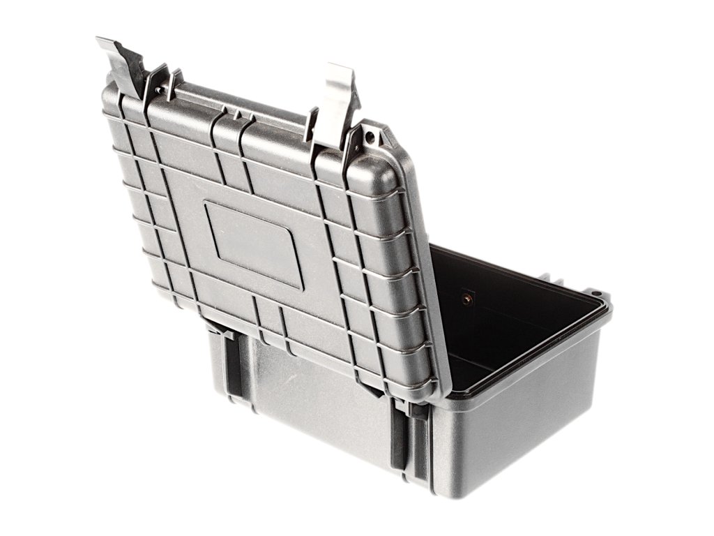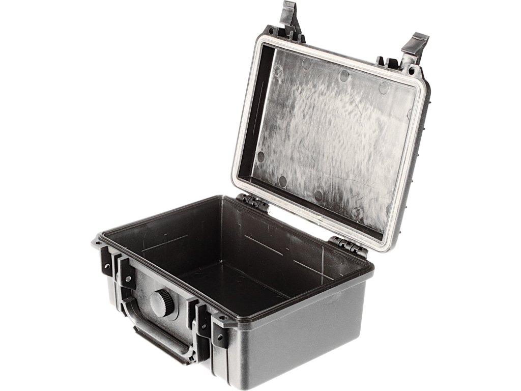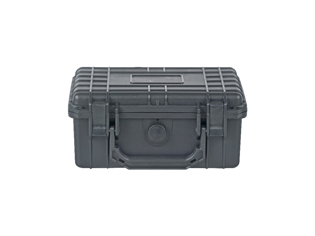 Plastikowa walizka o wymiarach zewnętrznych 232 × 192 × 111 mm wyposażona jest w gumową uszczelkę chroniącą przed wnikaniem wody (rozpryski) oraz dwa otwory na odpowiednie kłódki lub plomby. Dodatkowo posiada boczny składany uchwyt. Materiał: PP. Wymiary wewnętrzne: 208 × 146 × 94 mm.