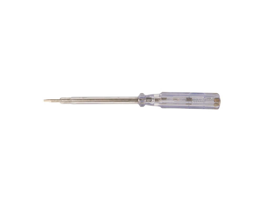 Wskaźnik neonowy wykonany z przezroczystego tworzywa sztucznego z metalowym bolcem uziemiającym w górnej części uchwytu. Zapala się przy dotknięciu wkrętaka do elementu pod napięciem między 110‒250 V AC i kontakcie z uziemieniem poprzez dotknięcie metalowego czopu. Osłona izolacyjna z tworzywa sztucznego na grot śrubokręta. Końcówka 15 mm. Długość: 190 mm.