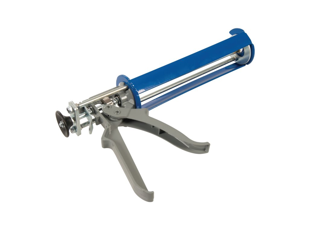Mocna stalowa konstrukcja wyciskacza z potrójną prowadnicą i spustem szybkiego zwolnienia. Dozownik służy do aplikacji żywicy.