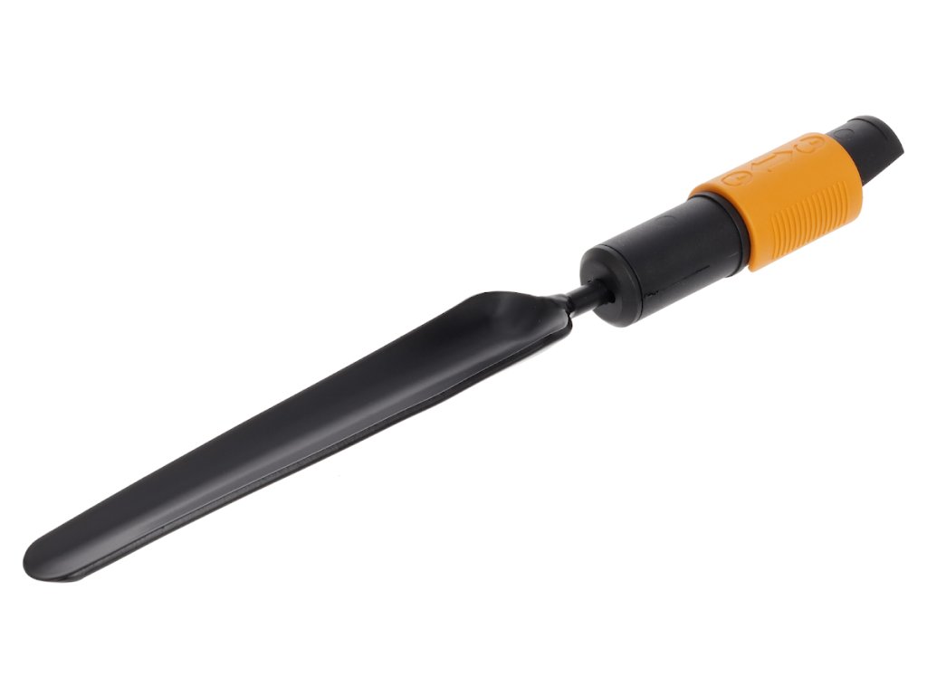 Ukłucie nadaje się do usuwania chwastów, takich jak mlecze i osty, nadaje się do wąskich gardeł. Część robocza wykonana jest ze stali borowej. System QuikFit pozwala łączyć różne narzędzia ogrodowe za pomocą jednego uchwytu. Zalecany uchwyt: S i M. Szerokość: 35 mm, długość: 328 mm, waga: 225 g. Oryginalny Fiskars numer: 137522.