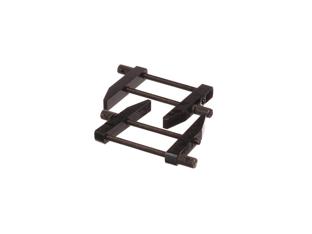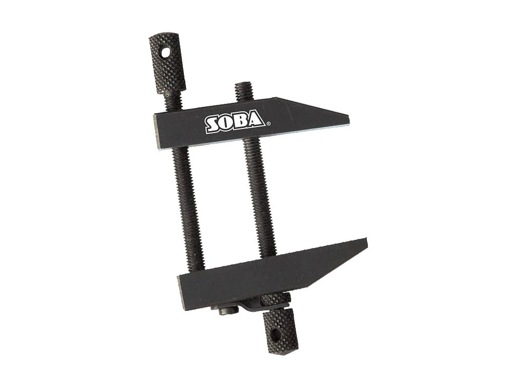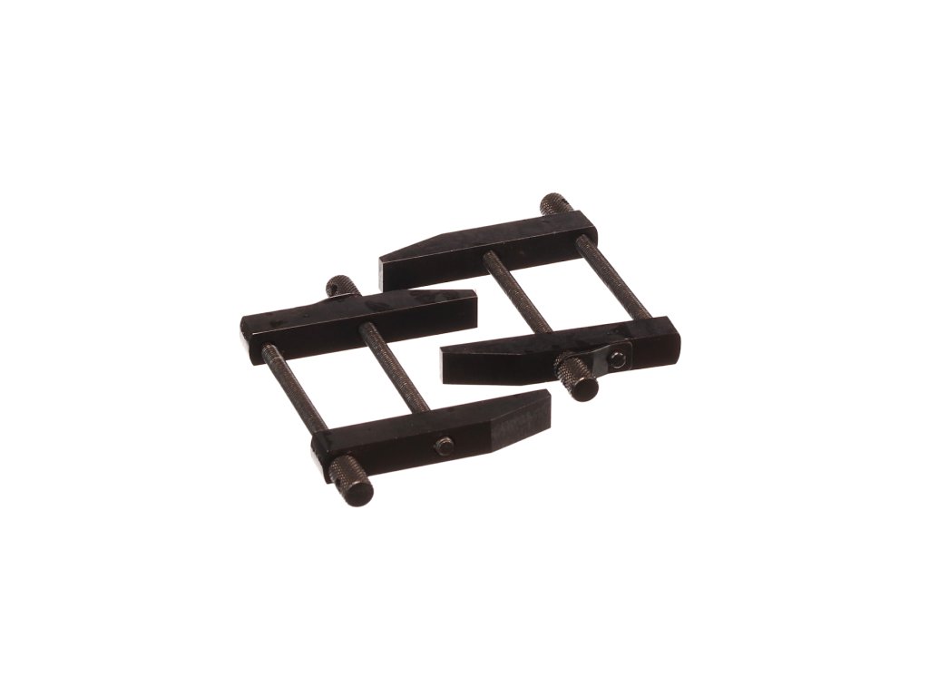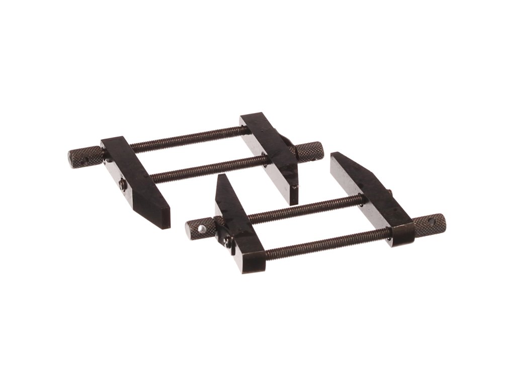 Zaciski stalowe ze śrubami zaciskowymi, które pozwalają dokładne i równoległe zaciśnięcie szczęk. Obróbka powierzchniowa poprzez oksydowanie, zakres mocowań do 60 mm, długość szczęk 75 mm z tego część robocza 35 mm. W cylindrycznej głowicy żebrowanej śrub jest otwór o Ø 3,5 mm. Zestaw zawiera 2 szt. zacisków.