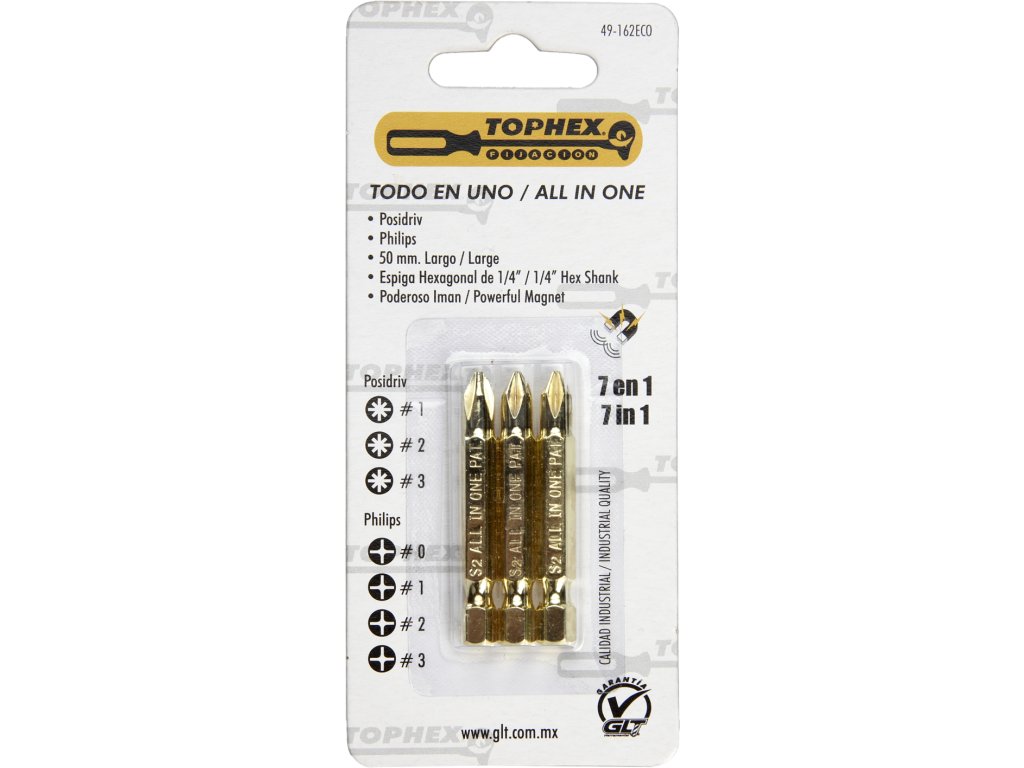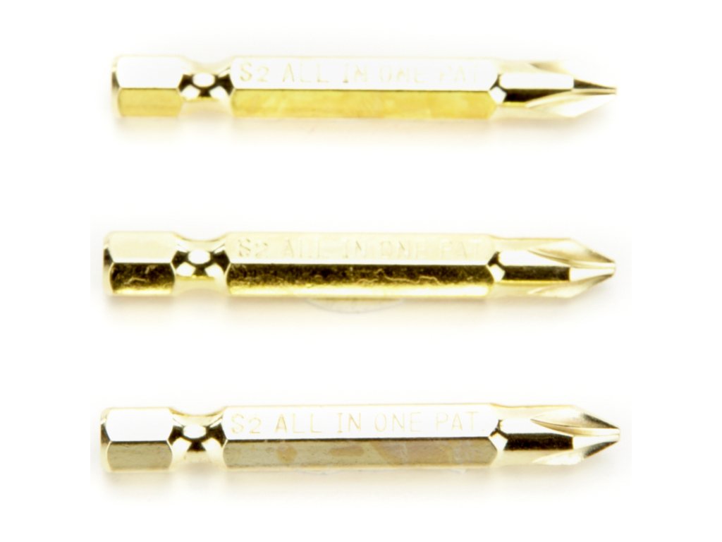 Zestaw trzech bitów ze stali o wysokiej jakości klasy S2, z mocnym magnesem, długość 50 mm. Zestaw 7 w 1 w wersji PZ 1 – 2 – 3, PH 0 – 1 – 2 – 3.