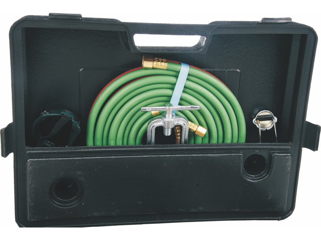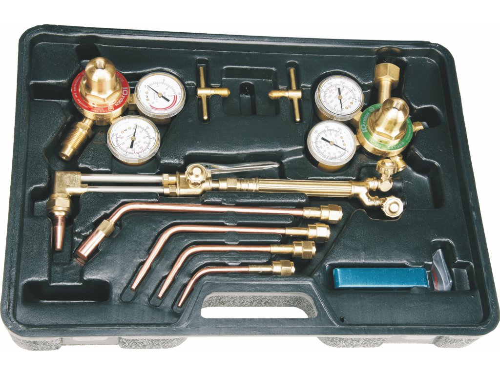Klasyczna spawarka w walizce - lekki i wysokiej klasy acetylenowy zestaw tnący i spawający odpowiedni do różnego rodzaju prac warsztatowych, przede wszystkim jednak do prac blacharskich "na gorąco". W plastikowej walizce przenośnej znajdują się wszystkie niezbędne elementy do złożenia pistoletu spawającego lub tnącego. Zestaw zawiera regulator ciśnienia tlenu lub gazu, uniwersalny pistolet z tlenowym palnikiem tnącym, cztery palniki wymienne oraz węże z osprzętem. Łatwa manipulacja i niska waga gwarantują dobre prowadzenie pistoletu podczas spawania i cięcia w najróżniejszych pozycjach.