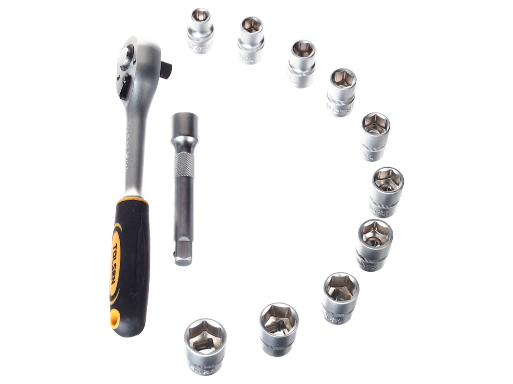 Ten zestaw kluczy nasadowych z mocowaniem 1/2" to praktyczne rozwiązanie do dokręcania i odkręcania połączeń śrubowych podczas prac serwisowych, naprawczych i montażowych. Dzięki przejrzystemu składowi obejmuje najczęściej używane rozmiary nasadek, dlatego sprawdzi się zarówno w warsztacie, jak i jako mobilny zestaw serwisowy do pracy w terenie lub w pojeździe.