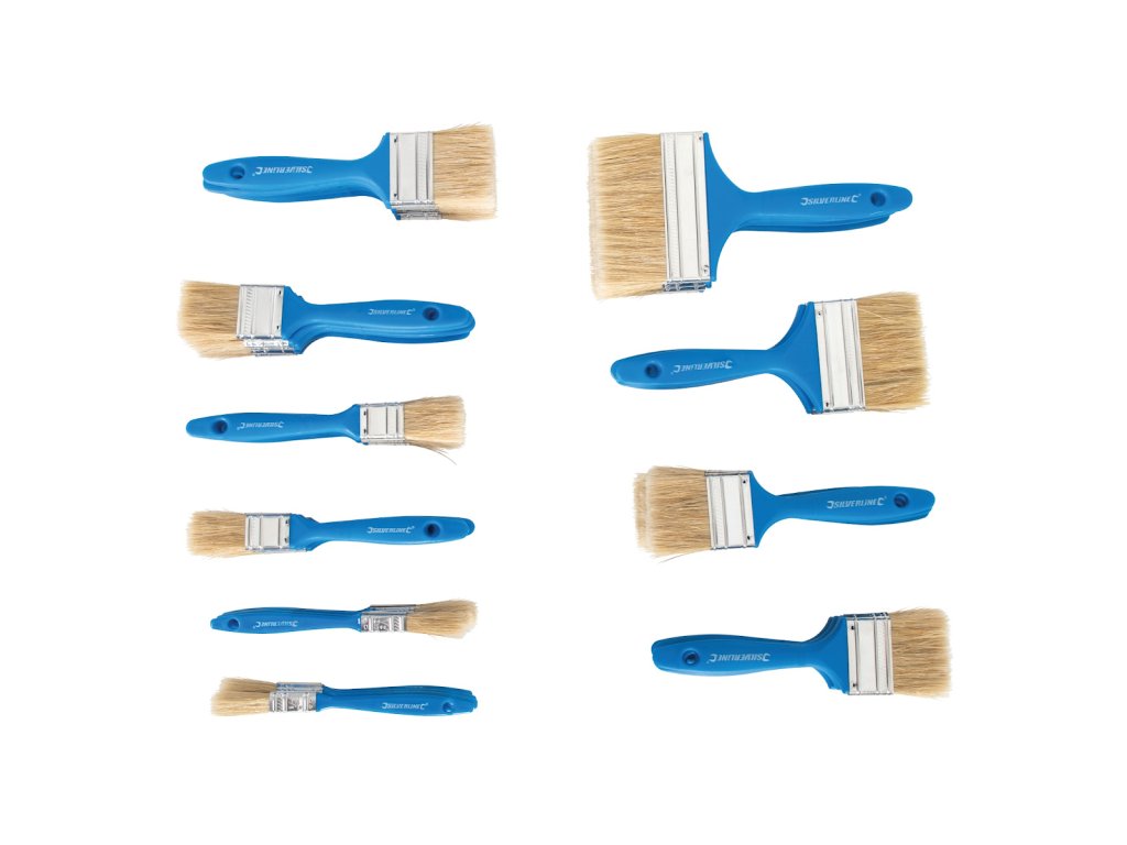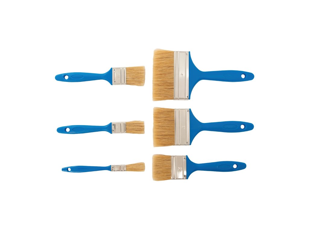 Uniwersalne pędzle z lekkim włosiem, polimerowym uchwytem i ocynkowanymi stalowymi pierścieniami. Idealny do czyszczenia części, malowania i napraw. Do użytku z farbą, żywicą, klejami, acetonem i innymi rozpuszczalnikami. Obejmuje rozmiary 8 × 12 mm, 10 mm × 25 mm, 6 mm × 40 mm, 18 mm × 50 mm, 4 × 75 mm i 4 × 100 mm.