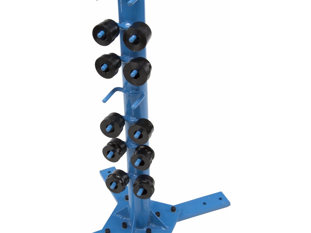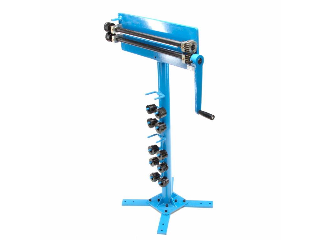 Praktyczna żłobiarka do blach do grubości 1,2 mm (miękka stal). Wersja stojakowa. W skład zestawu wchodzi 6 par wzorników do obróbki krawędzi i lemowania. Możliwość wsunięcia blachy do maszyny podczas obróbki aż na głębokość 38 cm.